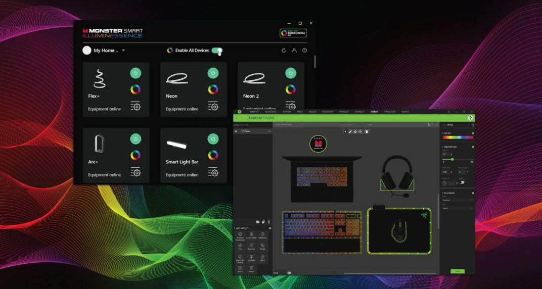 Using Razer Chroma RGB™, sync your Monster Smart Illuminessence colors and lighting effects with compatible PC accessories, games, and music!