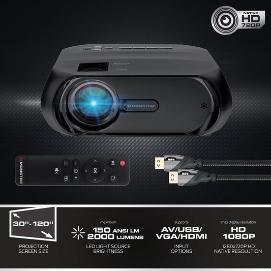 Wireless 1080P FHD TFT LCD Image Stream Projector with 120 Inch Portable Screen