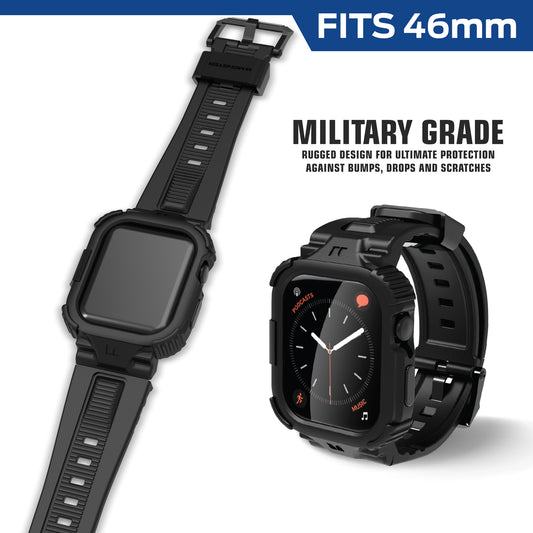 Rugged 46mm Watch Band with Screen Protector and Raised Bezel for Drop Protection - Military Grade Case
