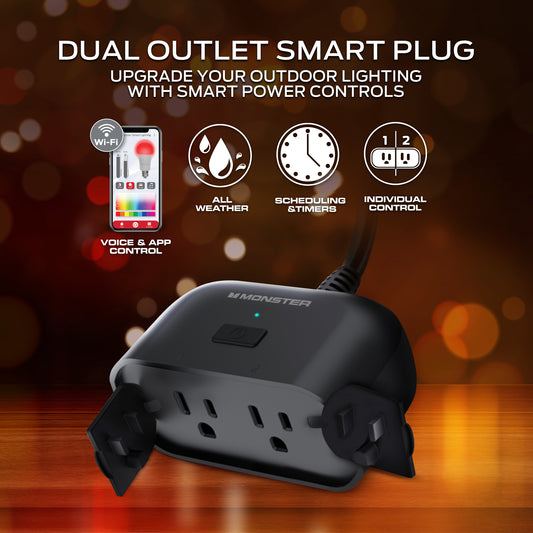 Monster Smart Dual Outdoor Plug with Wi-Fi, Weather-Resistant, 2 Outlets Compatible with Alexa & Google Home