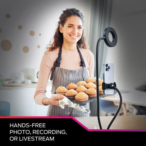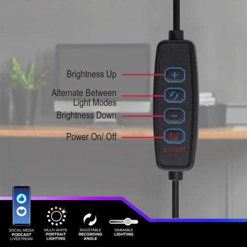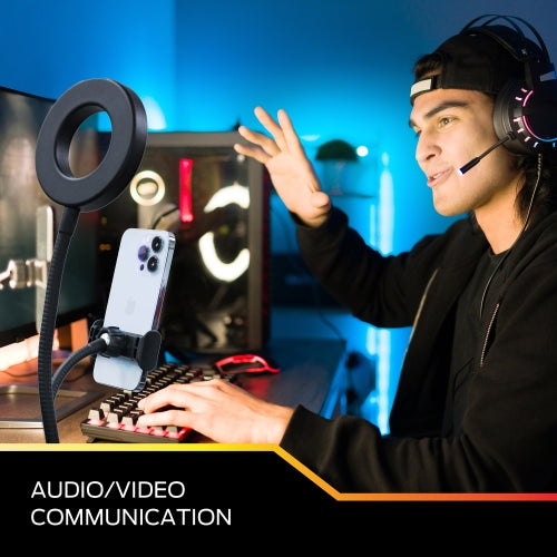 Whether it’s live streaming, video chats, or social media posting, you need a way to better spotlight yourself and your presentations. The Monster 3.5” Multi White LED Ring Light clip-on Mobile Mount provides a superior way to enhance what you want instantly. Able to hold any Universal Phone Support, this is ideal for social media sites, vlogging, video tutorials or live streaming on your favorite subjects. You’ll have 10 unique brightness settings and 3 White lighting options to select from to get the ideal look and appearance. The clip-on mount allows you to attach it to the end of a table, shelf or desk without a complicated setup. Our item can also be connected by the 4.5ft USB cable to a port on your computer or other devices for instant power to your mount’s lights. Enhance your next live stream or Instagram post with the Monster LED clip-on Multi-White Ring Light Mount.