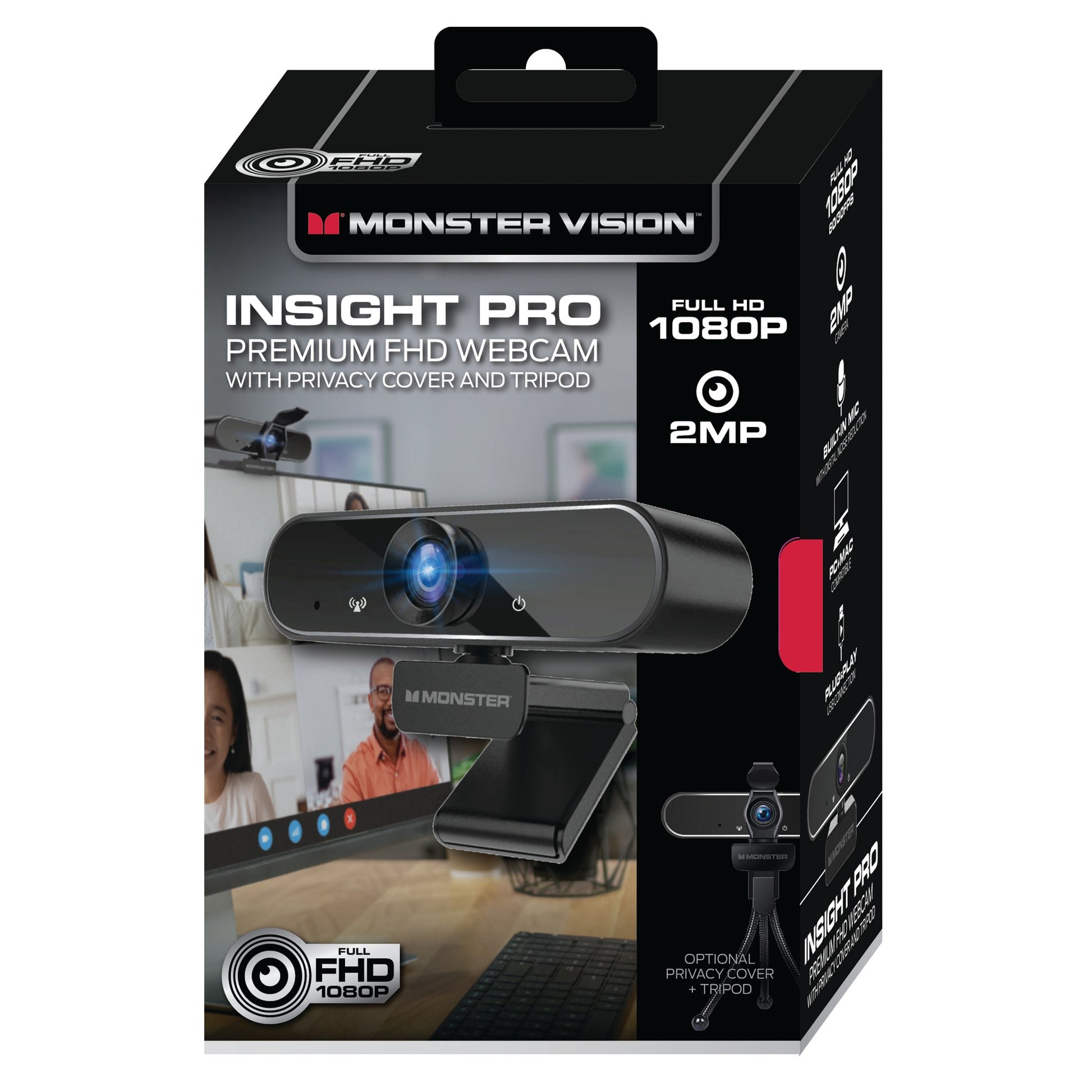 With working remotely becoming a new standard, having crisp, clear video calls and presentations is now a requirement. To that end, Monster has crafted the Insight Pro Premium FHD Webcam to transform your day-to-day work. At 1920x1080P, you’ll have crisp HD quality with our Two Megapixel camera, featuring sharp and clear images running up to 30 Frames-Per-Second. The built-in microphone provides up to 50 Decibels of noise reduction for quality sound, whether on conference calls, webinars or while streaming. The 360-degree rotation allows for you to adjust it to any angle for the best possible viewing. Our Manual Adjustment Focus Lens provides an additional field of view, with automatic light correction to create the optimal appearance depending on your location. With the Monitor Clamp, or Flexible Tripod, you’ll easily be able to connect it to your computer screen or take it anywhere, provided it’s connected to another computer setup. The Optional Privacy Cover blocks out your camera for a secure and comforting feeling. Setup’s a breeze, just plug and play via a USB port, with no additional software or complicated pieces required. For better presentations when having your next morning meeting, turn to the Insight Pro Premium FHD Webcam.
