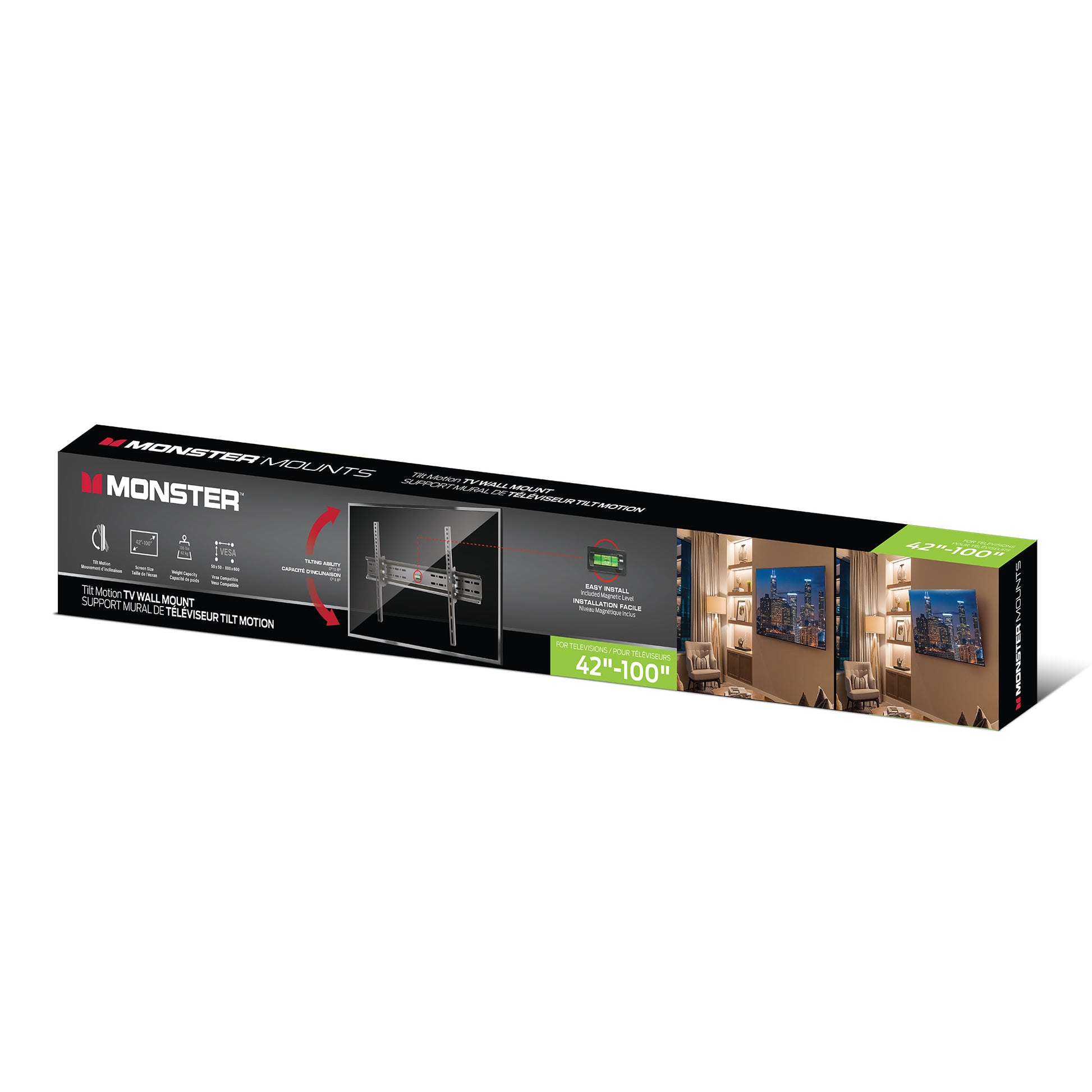Experience the ultimate in safe and comfortable home viewing with the Monster Black Large Tilt TV Wall Mount. Engineered for today's massive screens, this robust bracket securely supports most 42-inch up to a colossal 90-inch TVs with a reliable 135 lb weight capacity. Say goodbye to glare and neck strain with the adjustable 0° to 8° tilt feature, allowing you to find the perfect viewing angle from the couch or floor. Installation is simplified with the generous VESA 880 x 600 compatibility and the included magnetic level, ensuring a perfect, hassle-free setup every time. Upgrade your home theater with a mount that offers monster strength and seamless viewing.