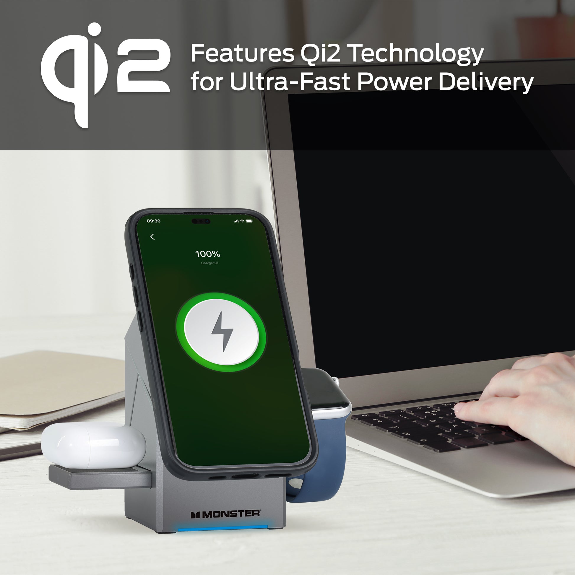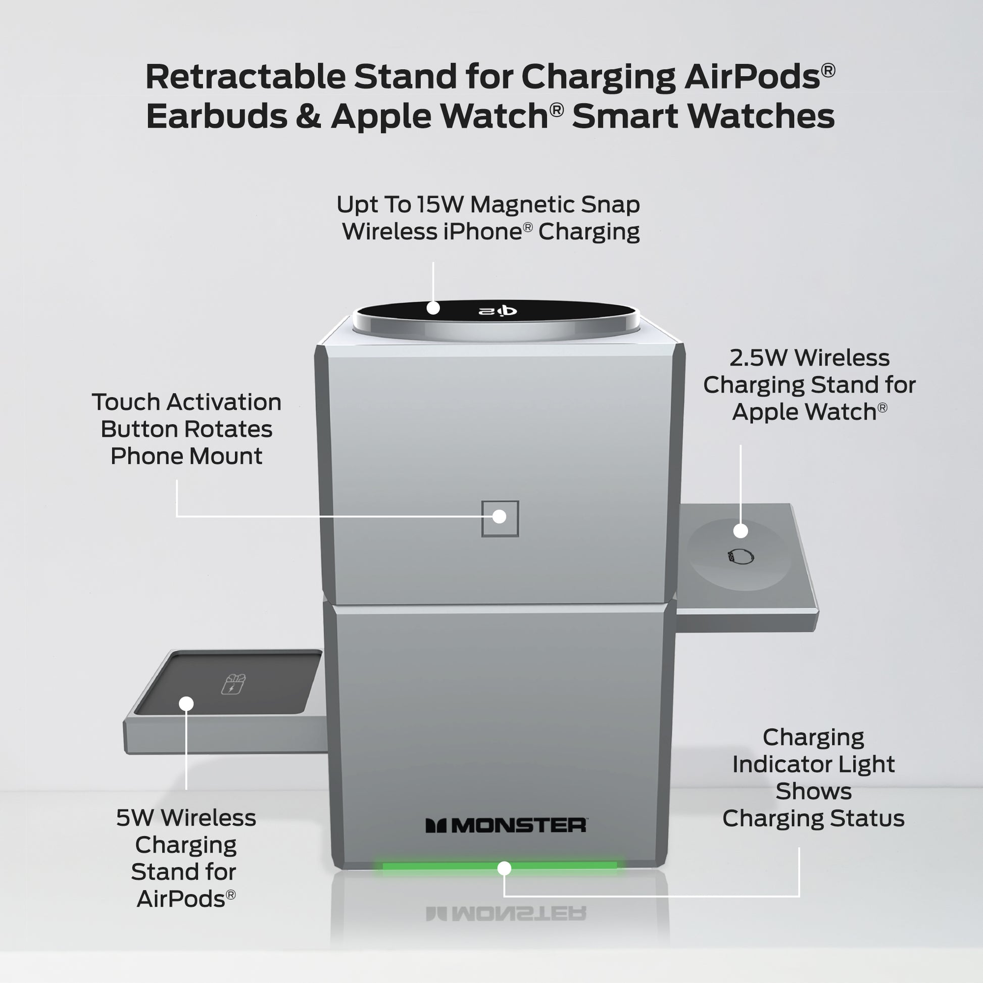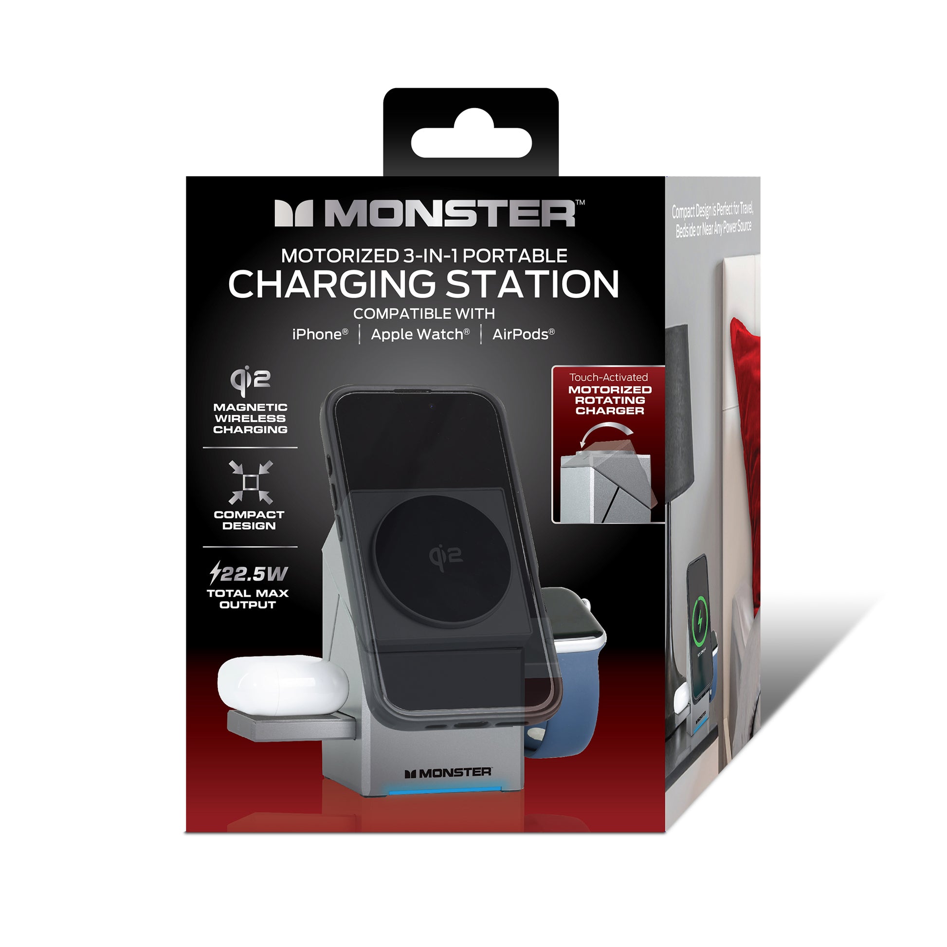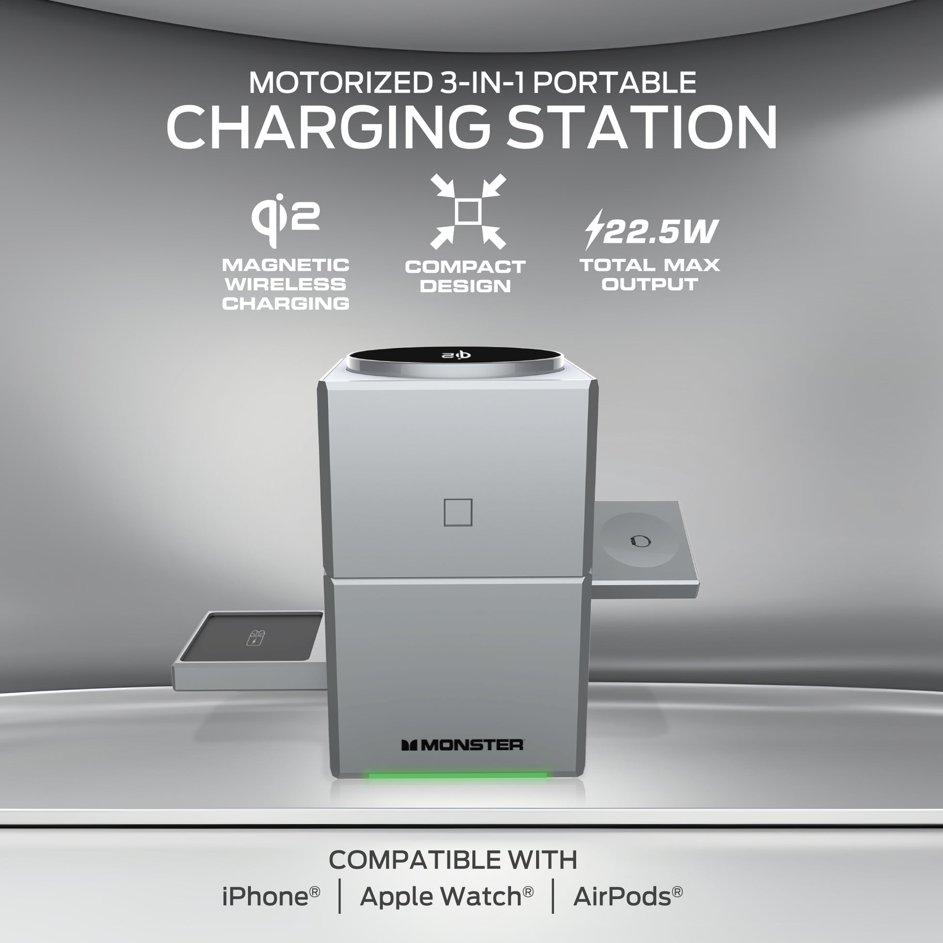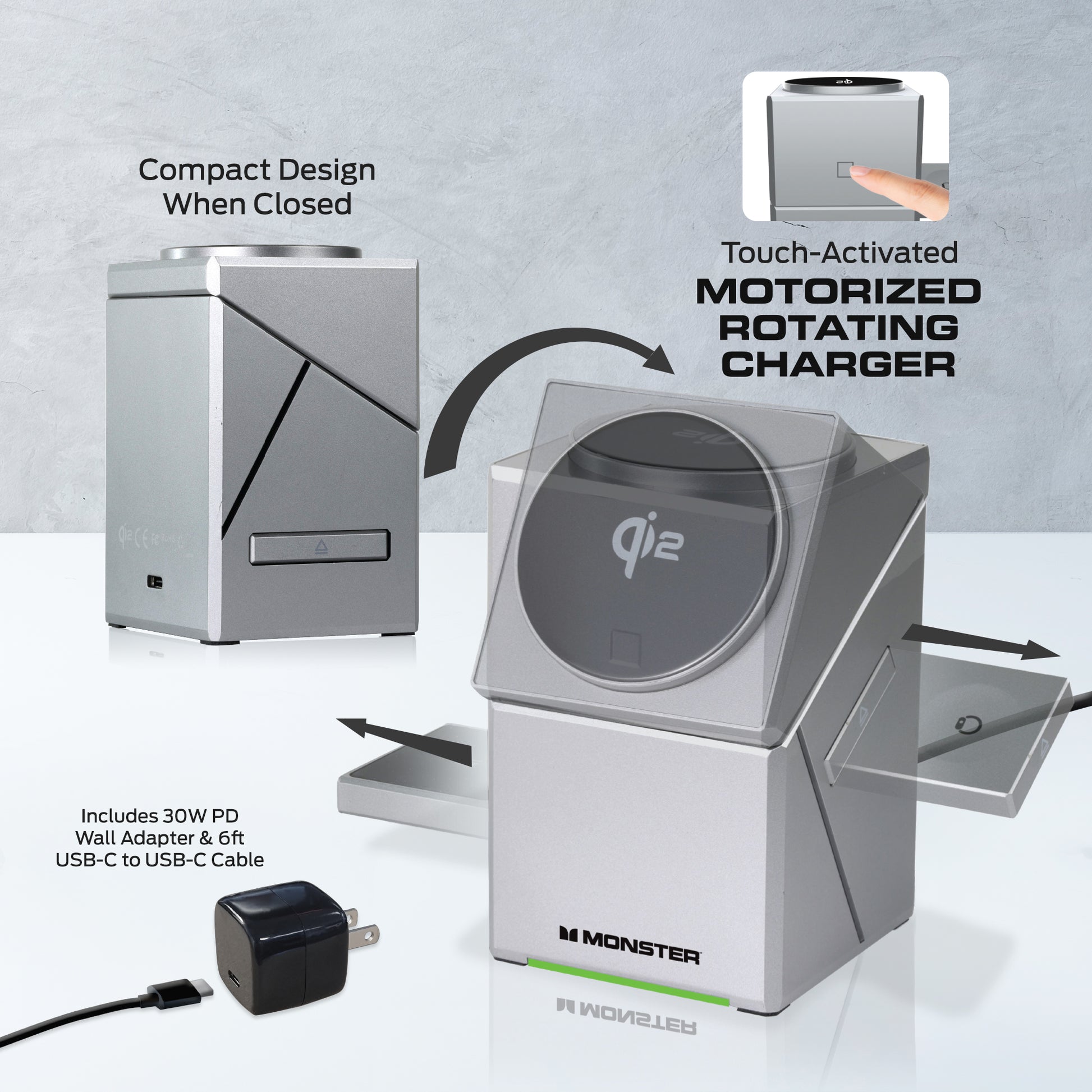 Monster 3-in-1 Motorized Wireless Charger for iPhone, Apple Watch & AirPods - Magnetic, Rotating, Fast Charging Station