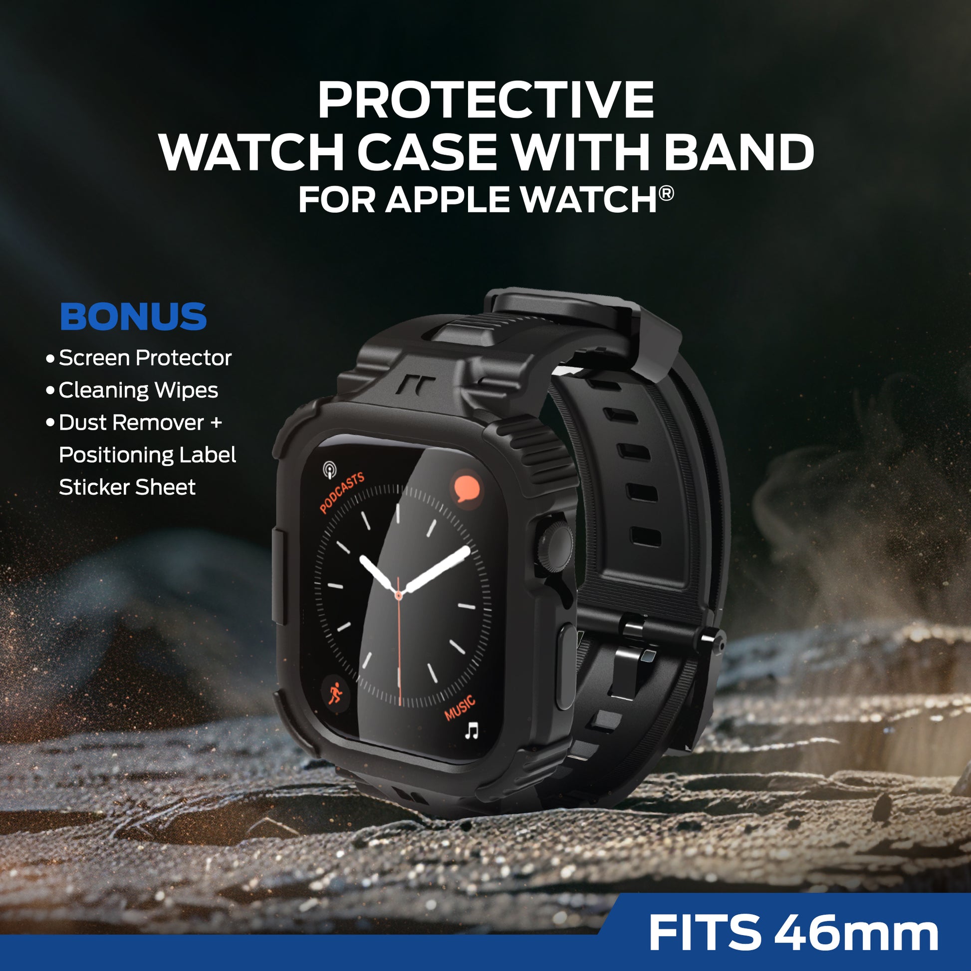 Rugged 46mm Watch Band with Screen Protector and Raised Bezel for Drop Protection - Military Grade Case