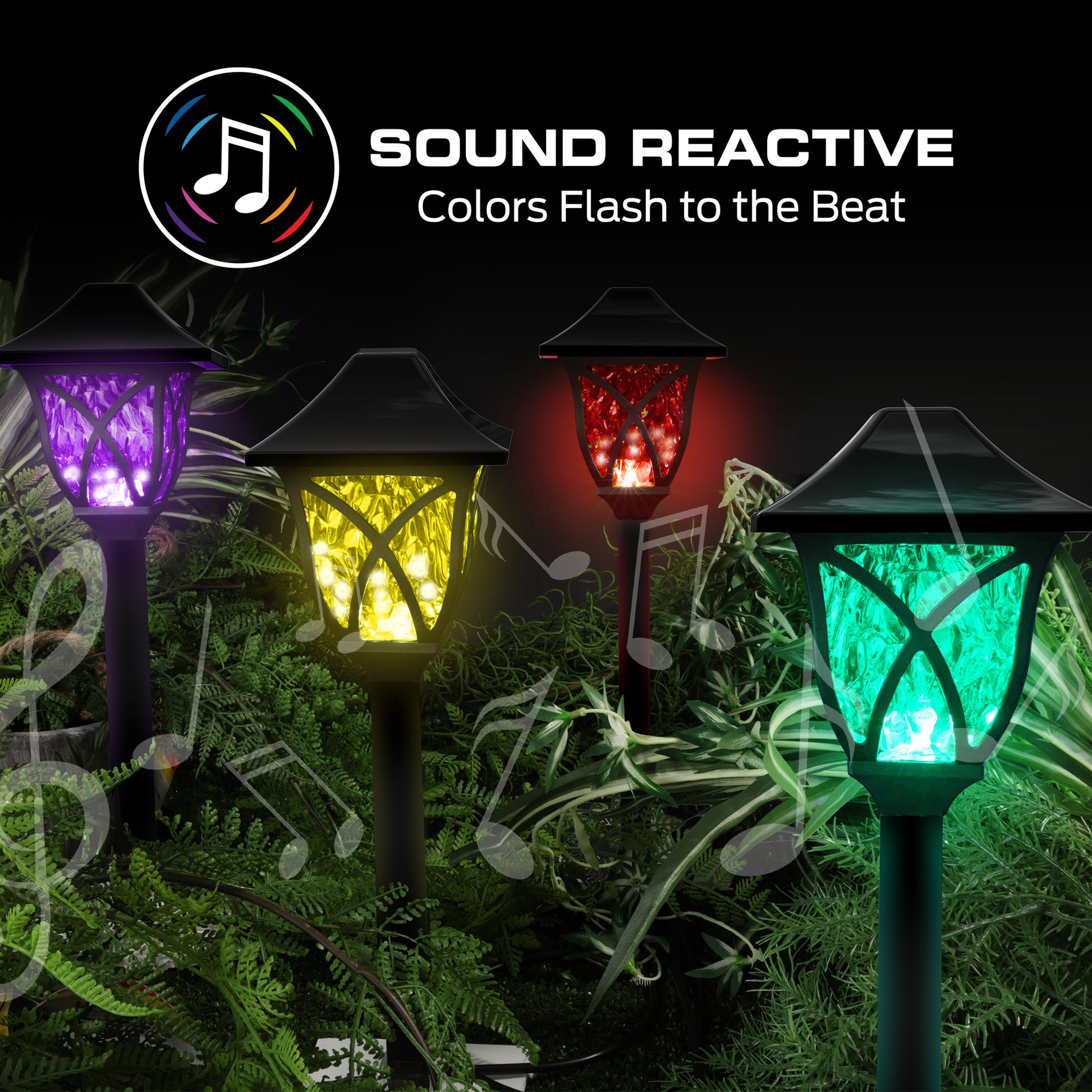 Smart Outdoor Sound Reactive Pathway LED Lights, 4 Individually Controlled Dimmable LEDs, IP44 Water & Weather Resistant
